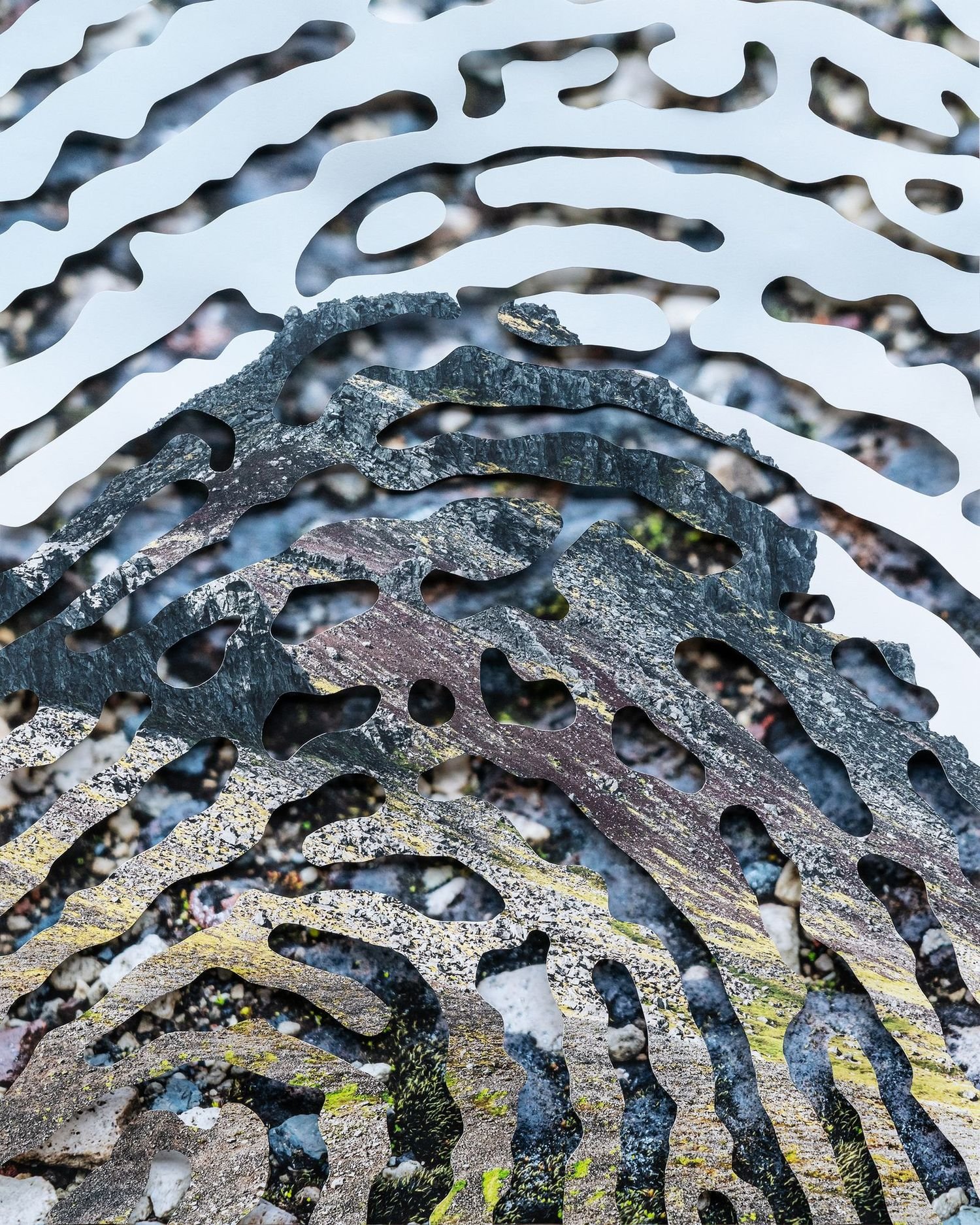 Charlotta María Hauksdóttir: This specific project and phase of landscape work has been ongoing for 18 years now with other projects in between. It has taken on a life of its own. In 2016, I wanted to make more landscape work. I wanted to fragment the landscape and had been compositing it within images. I started doing these fingerprint patterns, dispersed through the image. This was done in an intentional way, even if it’s not explicit for the viewer.