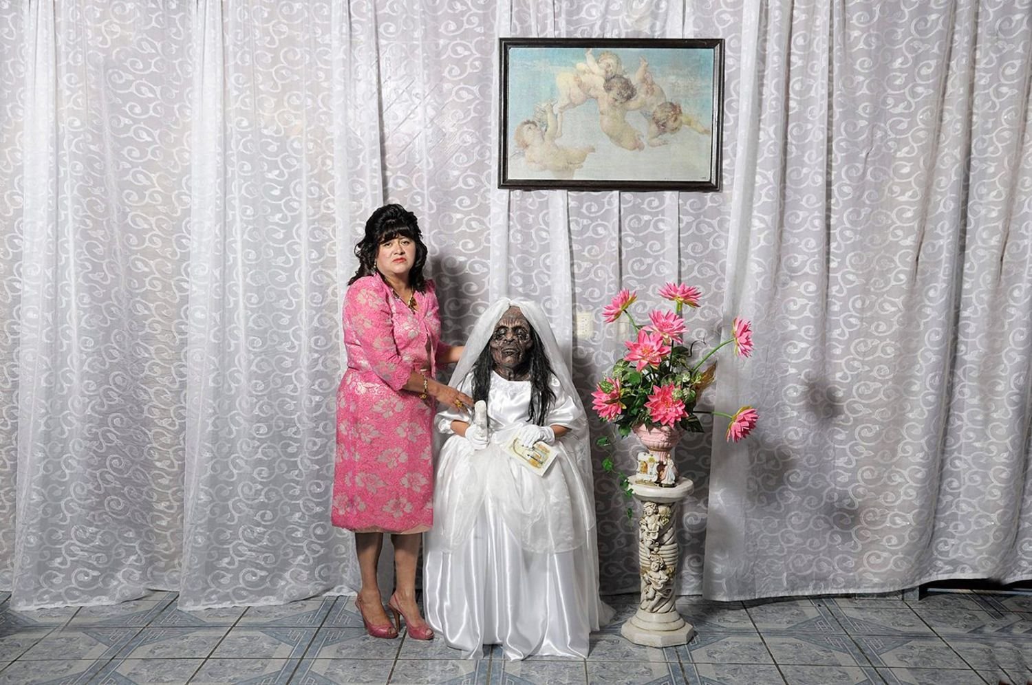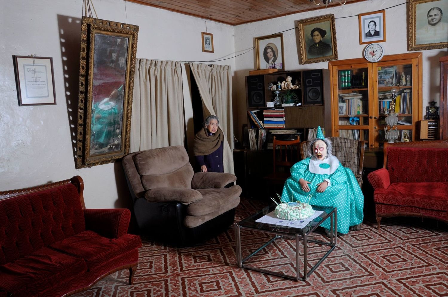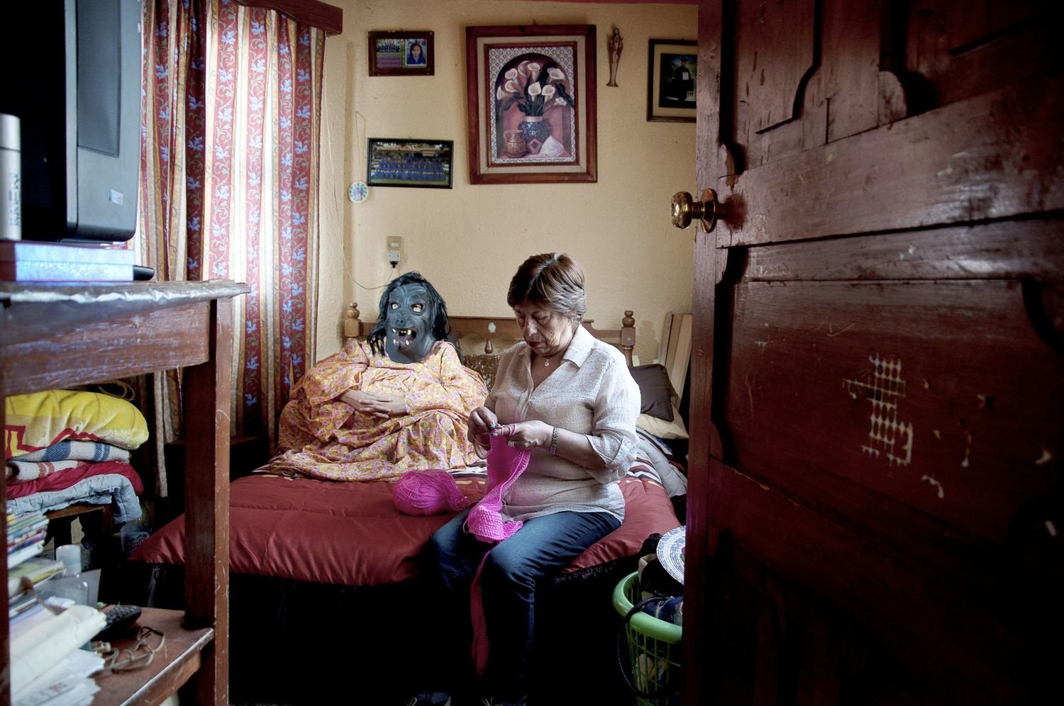 As an adult, a fascination for these pre-Hispanic traditions and apocalyptic Catholic visions endured, becoming a vessel for the photographer to pay tribute to a dear great aunt that had passed away. Suffering throughout her life from a rare autoimmune disease called scleroderma that causes visual deformation, she was treated as a pariah by friends and family. Taken in by Moreno and his grandmother, they lived together during the final years of her life.