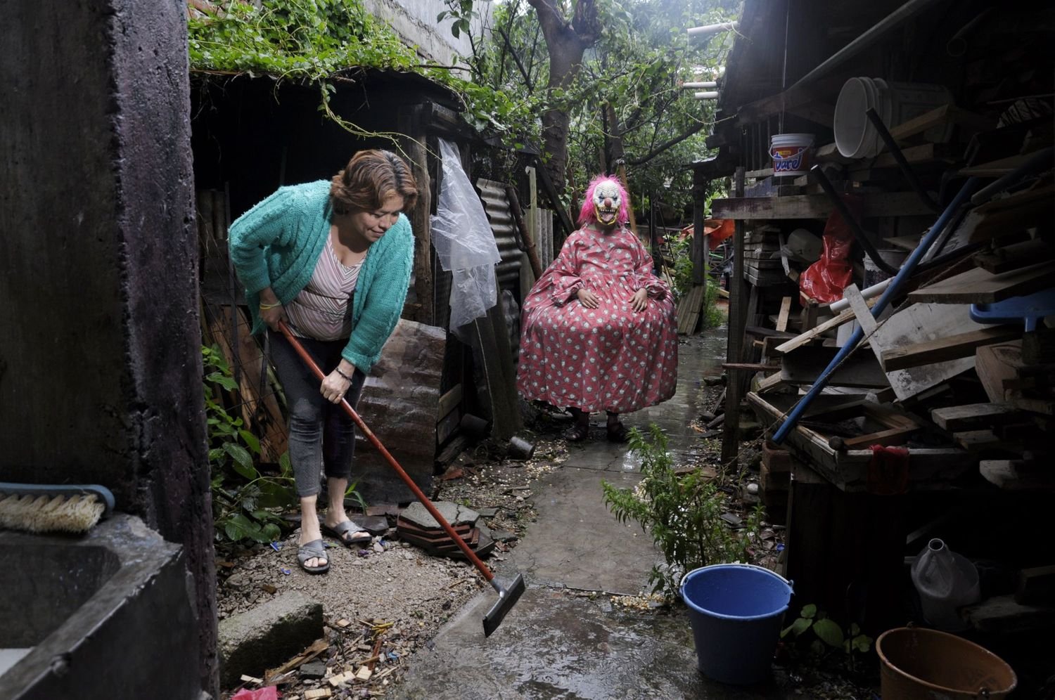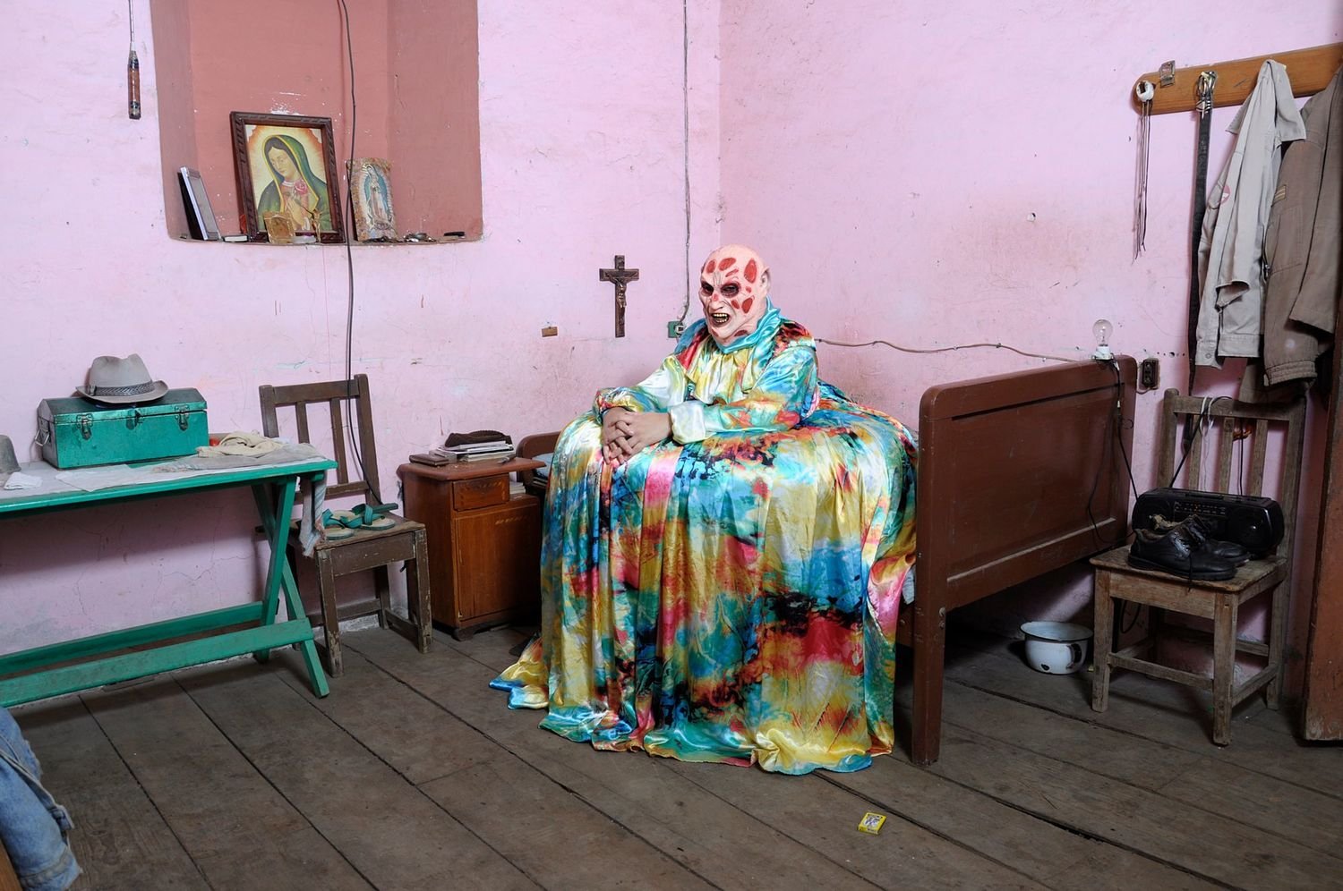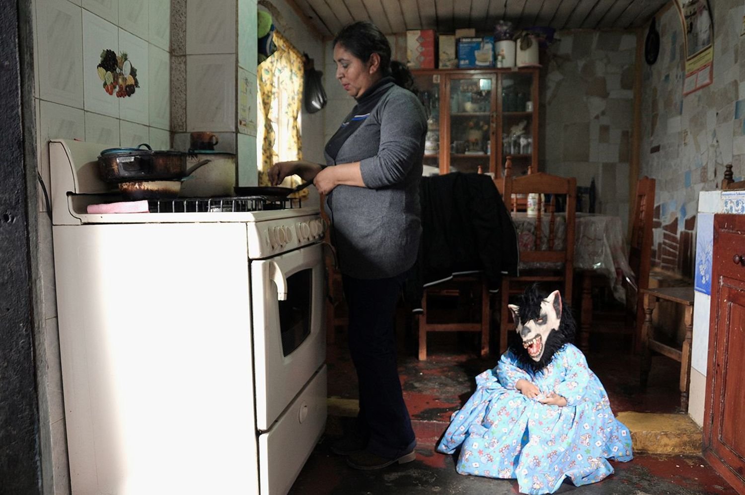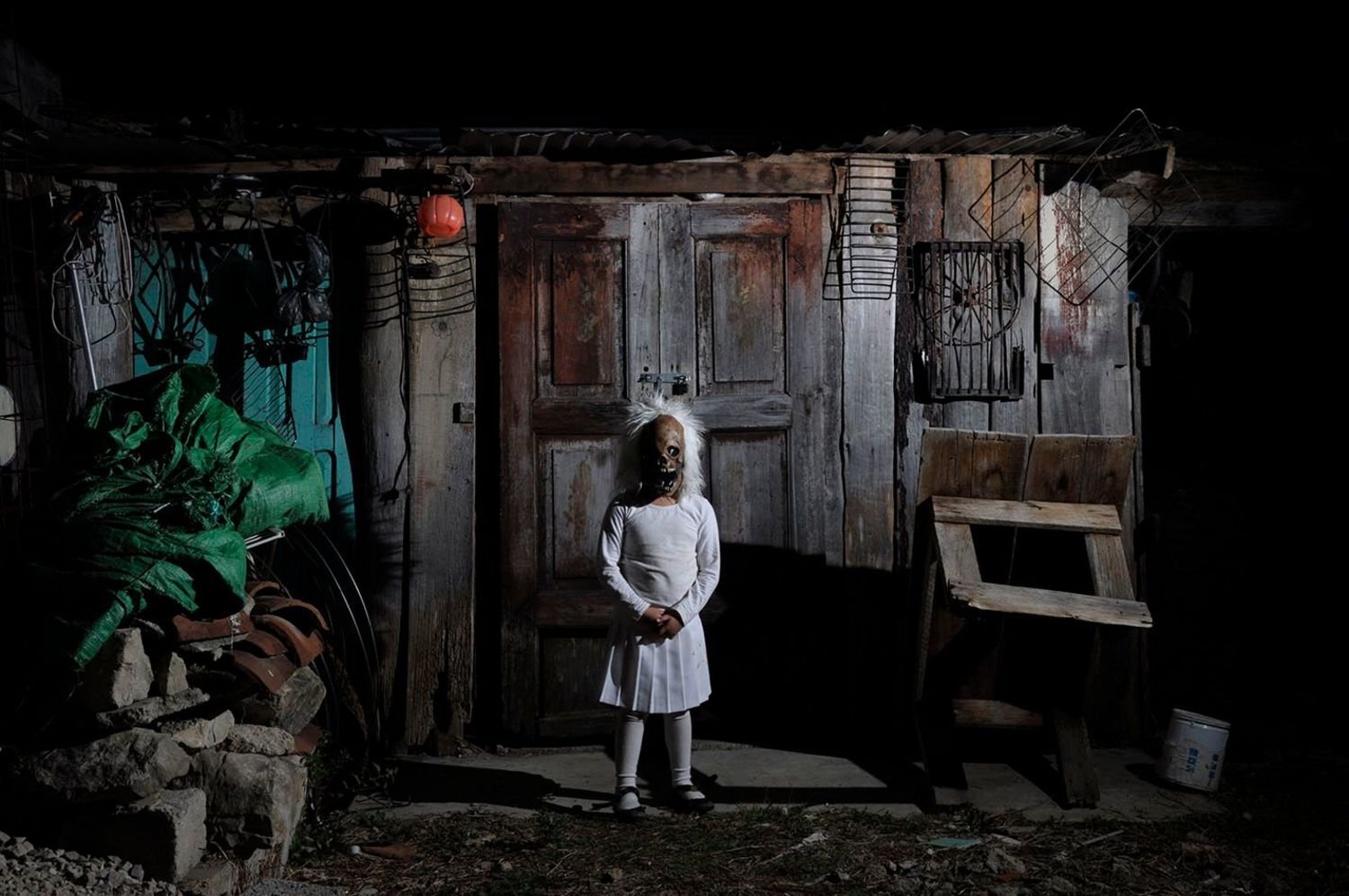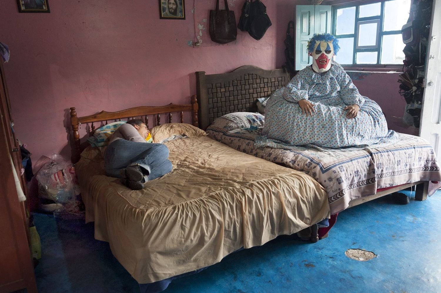 A little boy is hanging out at home in the living room, toy cars at his feet. Objects and nicknacks adorn the walls, the TV plays in the background: an everyday scene—with one major difference. Sitting opposite him is a strange, otherworldly creature that could very well have just jumped right out of the television screen. The monster is one of the ‘Panzudos’ that lurk in the neighborhood of La Merced in San Cristóbal de las Casas in Chiapas, México: the imaginary protagonists of Mexican photographer Diego Moreno’s project In My Mind There is Never Silence. Revealing themselves every year on the 22nd of September—the feast day of Our Lady of La Merced—the Panzudos descend onto the streets to purify themselves of their sins.