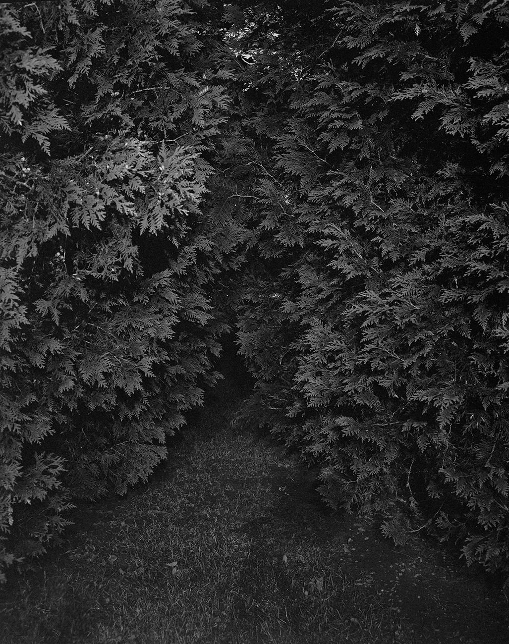 Hausthor’s larger body of work ebbs and flows throughout Wilted, and all the images are brought together through his affinity for illuminating black and white visuals with jarring lighting. This method is, of course, intentional, and it mirrors the immediate experiences and surroundings the photographer looks to capture in his work. He explains, “I mostly photograph on an island in Maine and in the backwoods of Vermont. At night, everything is only lit up by car headlights, a weak headlamp, or the pop of a flash—nothing looks quite real. It just barely looks familiar.”