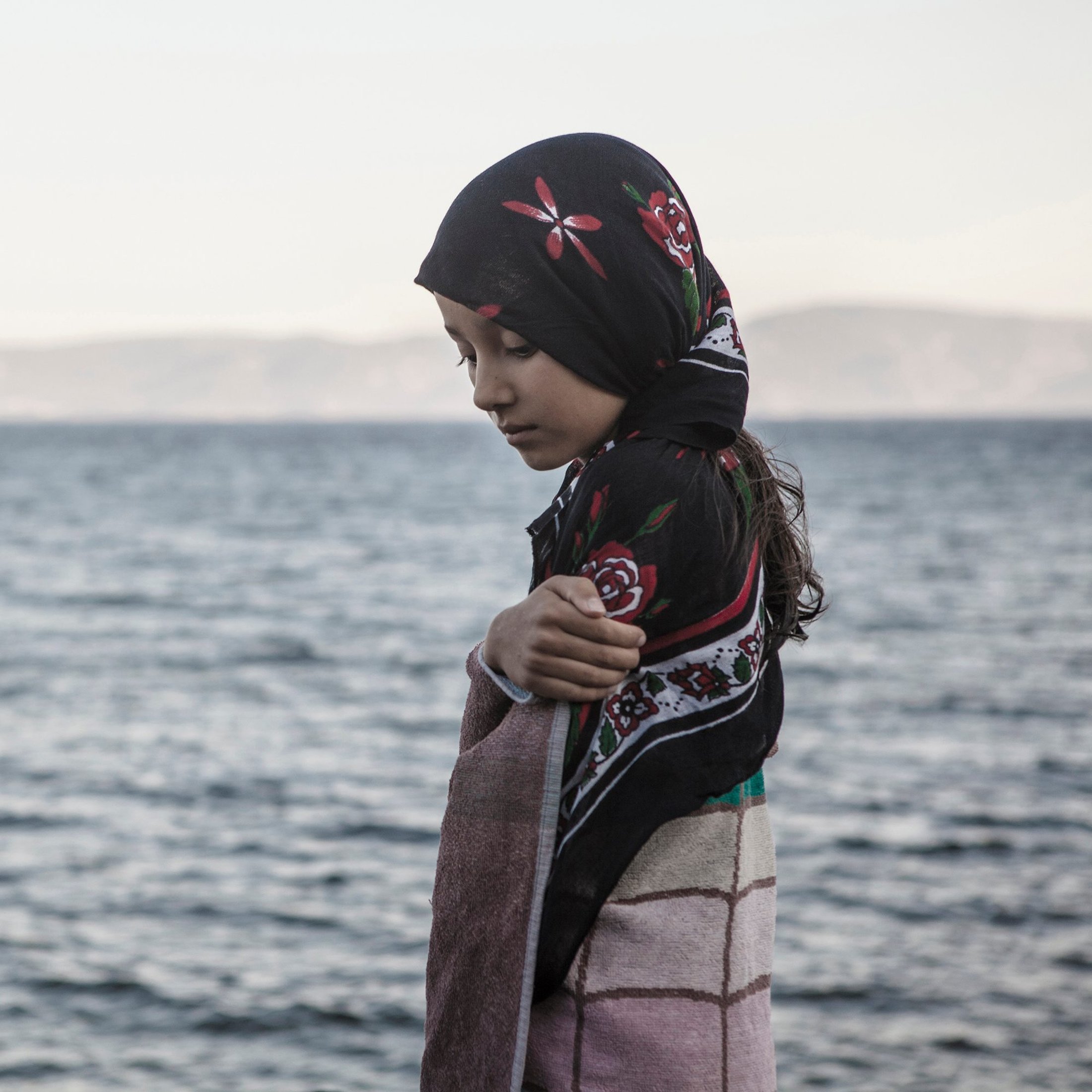 The series On The Shore seeks precisely this personal encounter with those who have suffered the terrible experience of war. The portraits were made close to the village of Eftalou, on the northern coast of Lesvos, last August/September 2015. The migrants had only just landed when I made the photos. They were still wet and disconcerted on the shore after the two-hour trip taken on an inflatable boat, crossing the 10 km that separate the Turkish and Greek coasts.