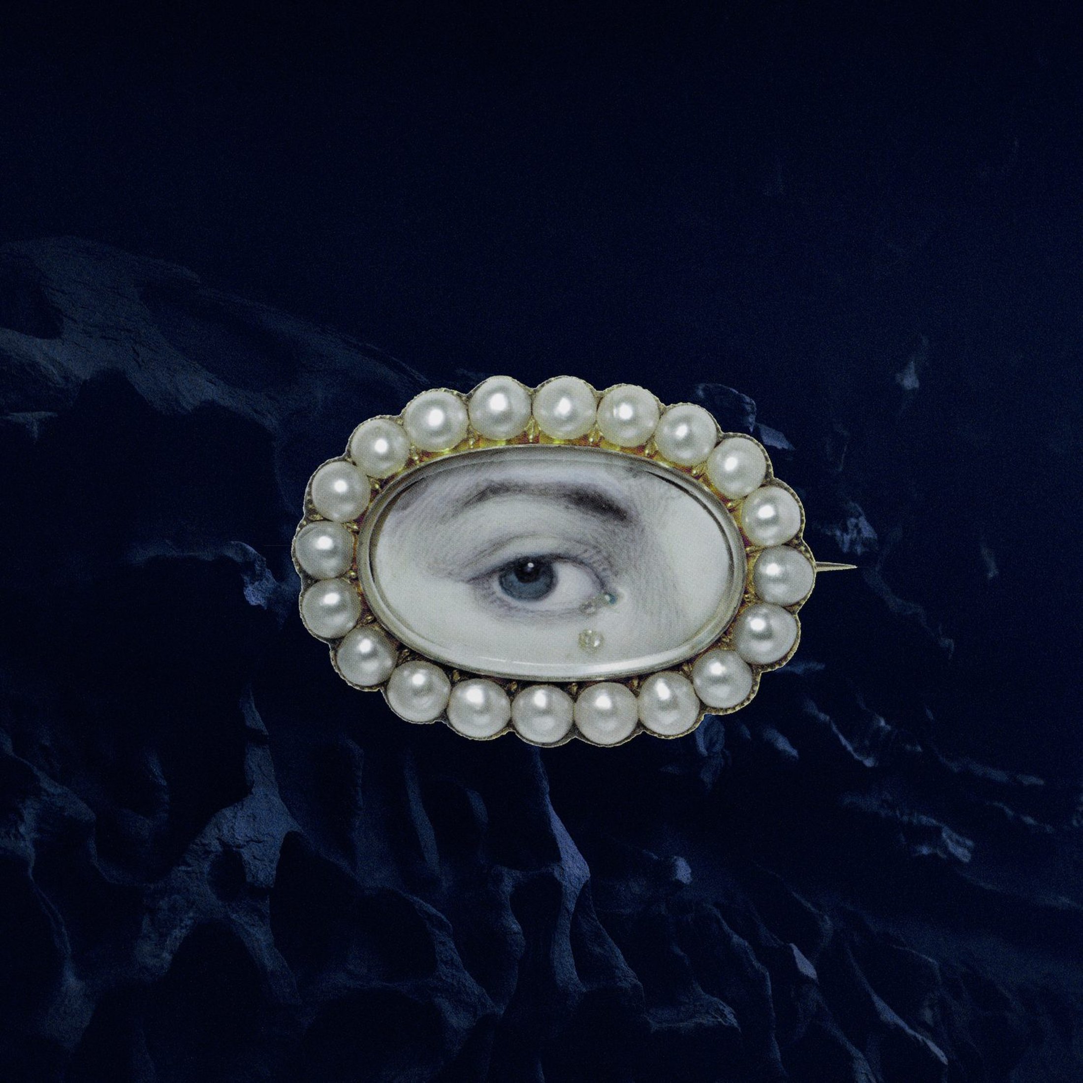 Set against a velvety, sea-like backdrop, the images appear to us in a palette of deep lapis blue, inky black, and intense jade green—the exact sort of green that light makes when it pierces the water’s surface and illuminates the ocean floor. Many of the images appear this way, in fact—like theatrical representations of underwater vignettes that have eclipsed out of the shadows momentarily. Full of items like pearly jewels and vintage photos, all of them seem to tell stories of distant lives.