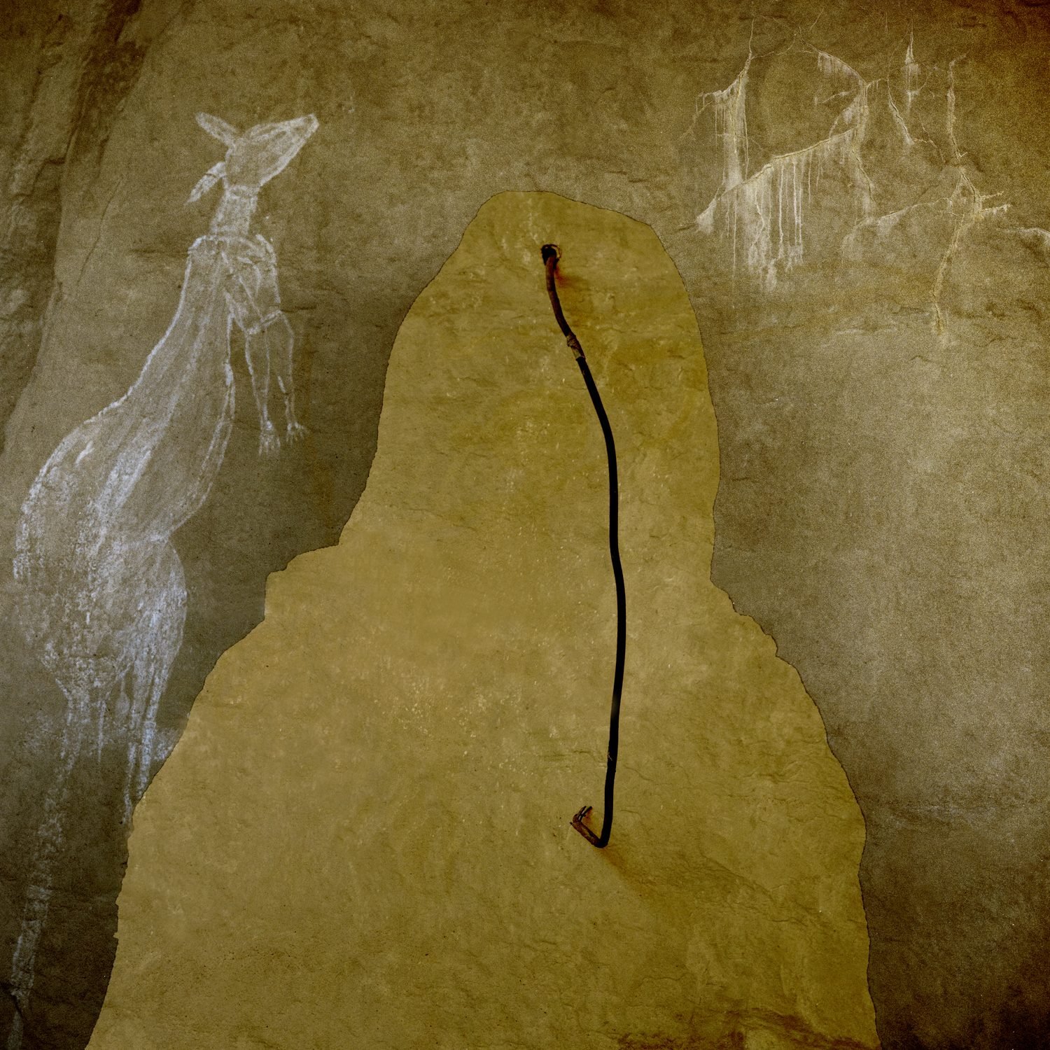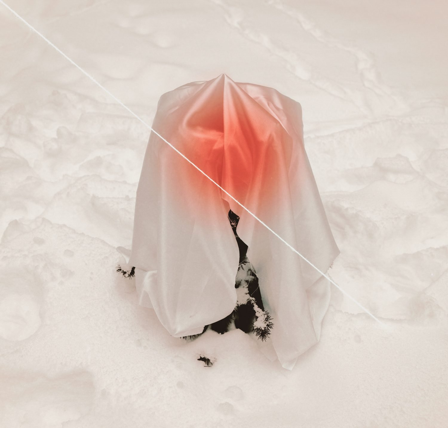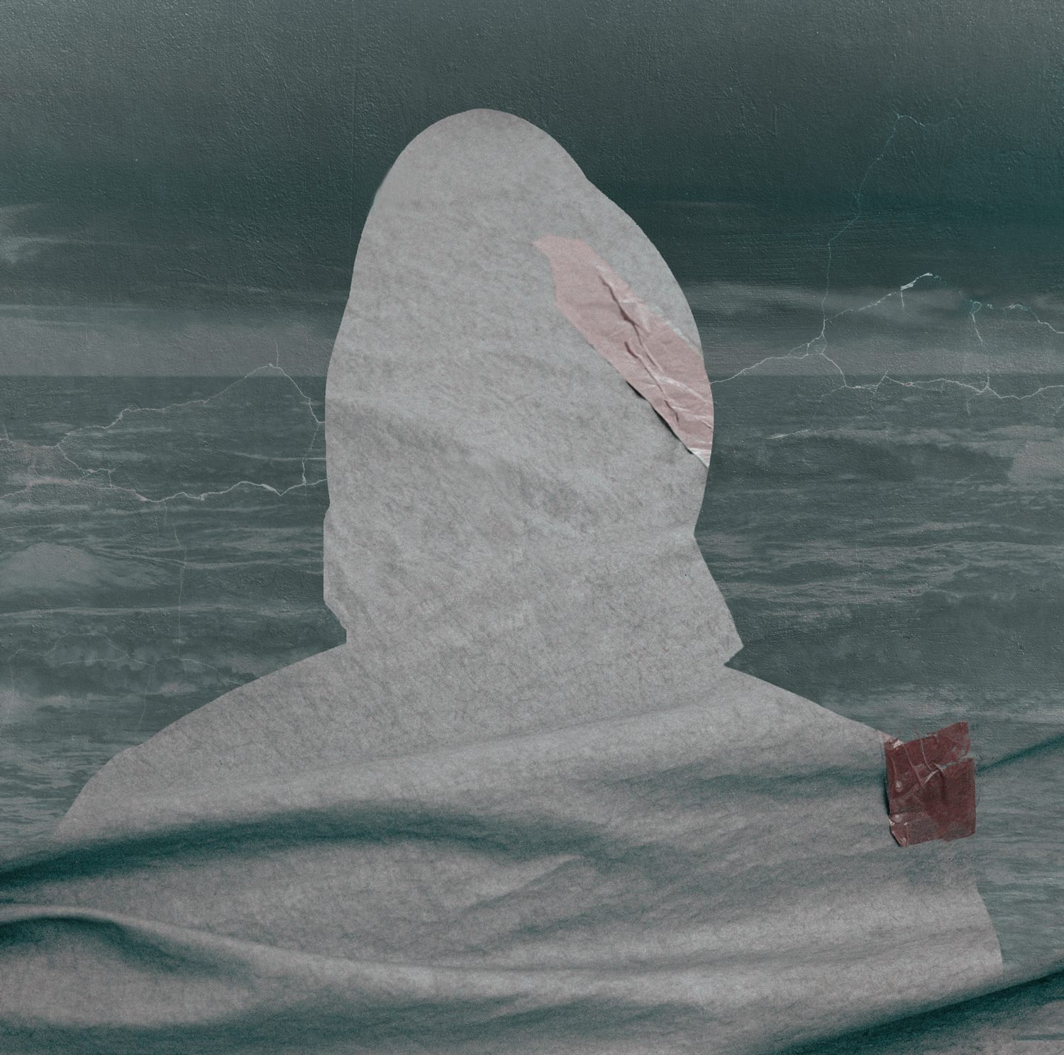 While experimenting with images in post-production, Sakellaraki started prioritizing the moirologists’ mysterious silhouettes, rather than directly showing their faces, bringing them into conversation with the Mani landscape. She explains, “I moved from the original figures to their concealed forms, where the distinction between the real and the imaginary led to a tangible experience of separation.” Through her images, this separation actually became an encounter. “The human figures of the female mourner turned into the landscapes themselves as I cut, drew together, marked, and disassembled the original figures.”