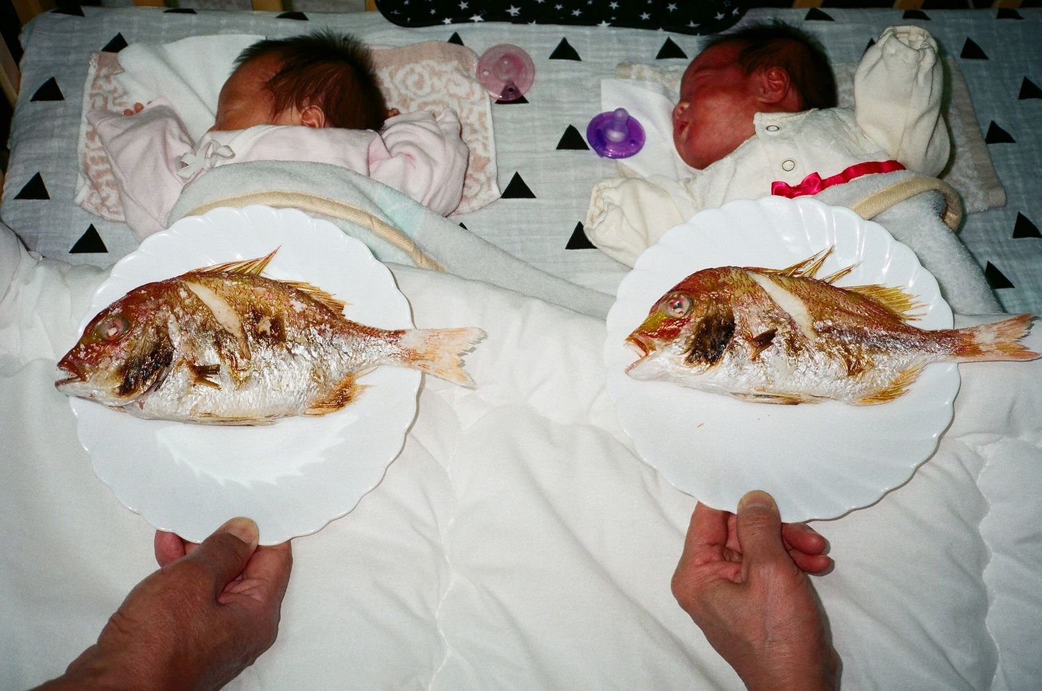 Each photograph embodies a ritual familiar to Nakamura himself. “I was interested in historical traditions that came to exist before I was even born, and what those might look like when combined with the abstraction of my photographic style.” In an image of a child covered in lipstick, Nakamura references the popular Japanese myth of Hoichi the Earless, a blind minstrel who becomes bewitched by ghosts. These subtle, playful references are found throughout the series, but Nakamura is careful about revealing too much. He explains, “I do not want to fix the images according to the concept. Instead, I want to give the viewer space for their imagination to build new perspectives.”