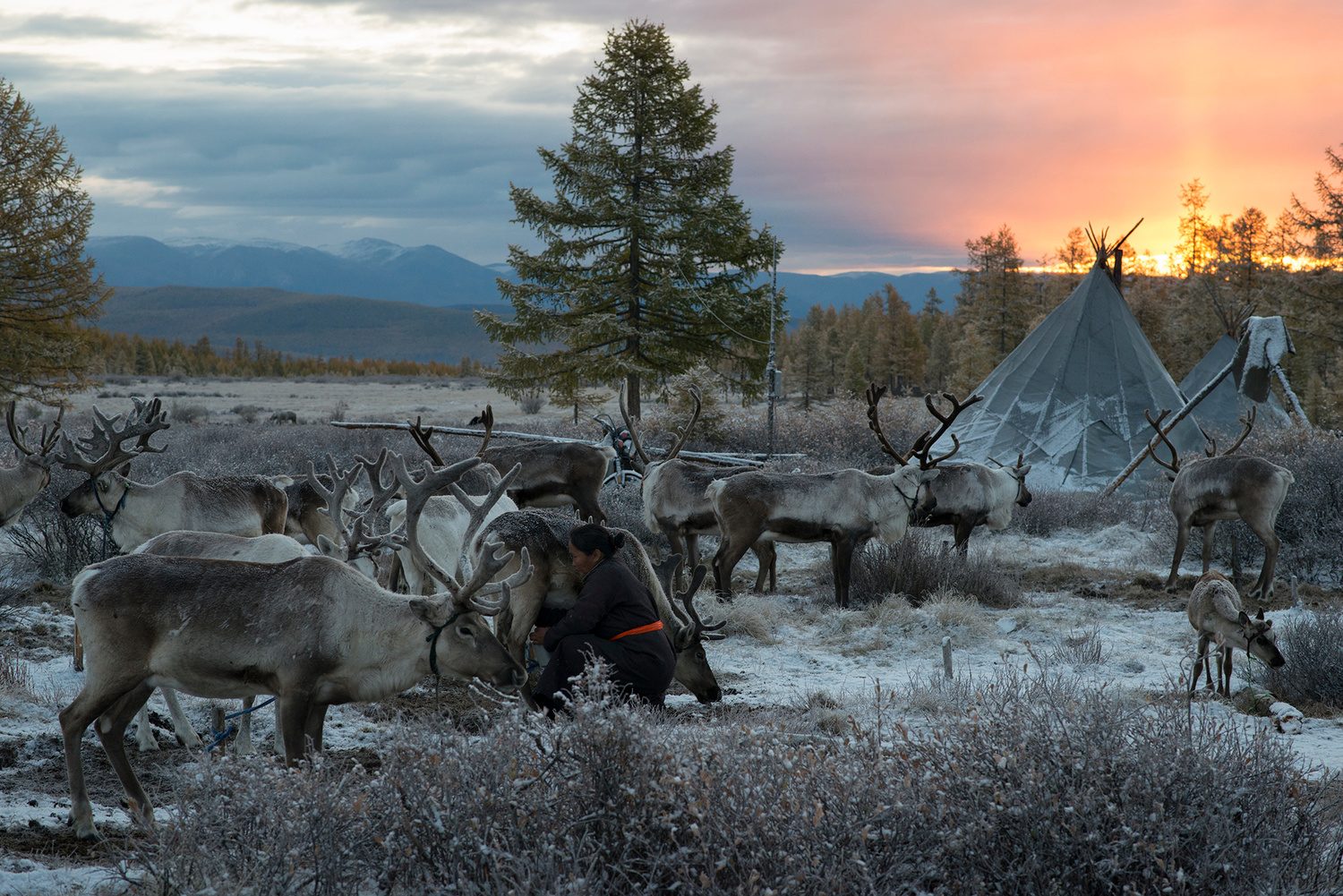 The Tsaatan ethnic minority are one of the last remaining groups of nomadic reindeer herders in Mongolia, and have been maintaining their traditions for thousands of years. They seasonally migrate within the forests of the Taiga according to weather and food conditions. They migrate to better care for their reindeer, which they depend on for milk and transportation.