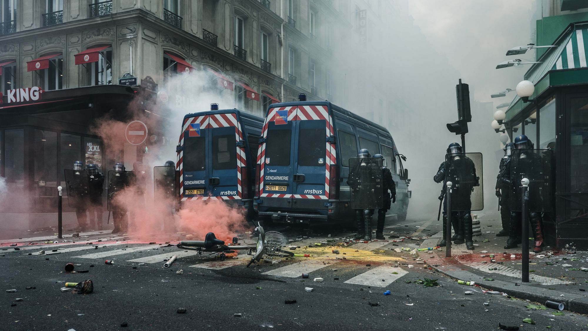 Indeed, an uninitiated reader could be forgiven if she looked quickly at Soubanere’s photos and thought them from an embattled city somewhere far away—Kiev, Damascus, Istanbul. But no, whether we recognize it or not, this series shows us Paris—that erstwhile city of love, light, poetry and photography, dramatically transformed into yet another stage for conflict.