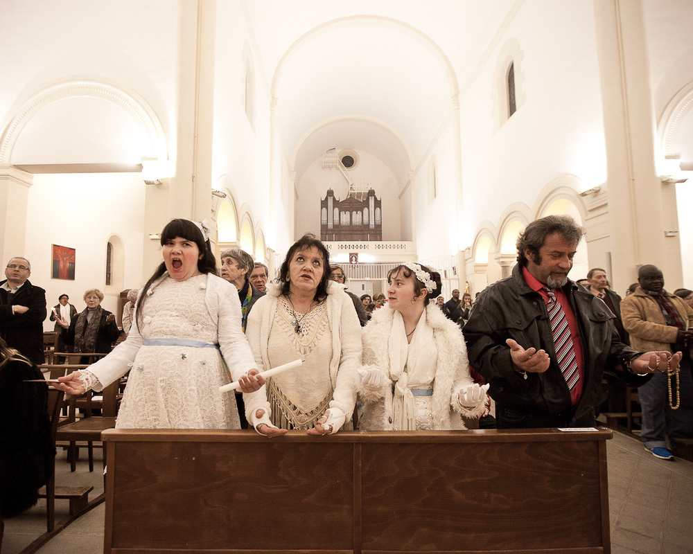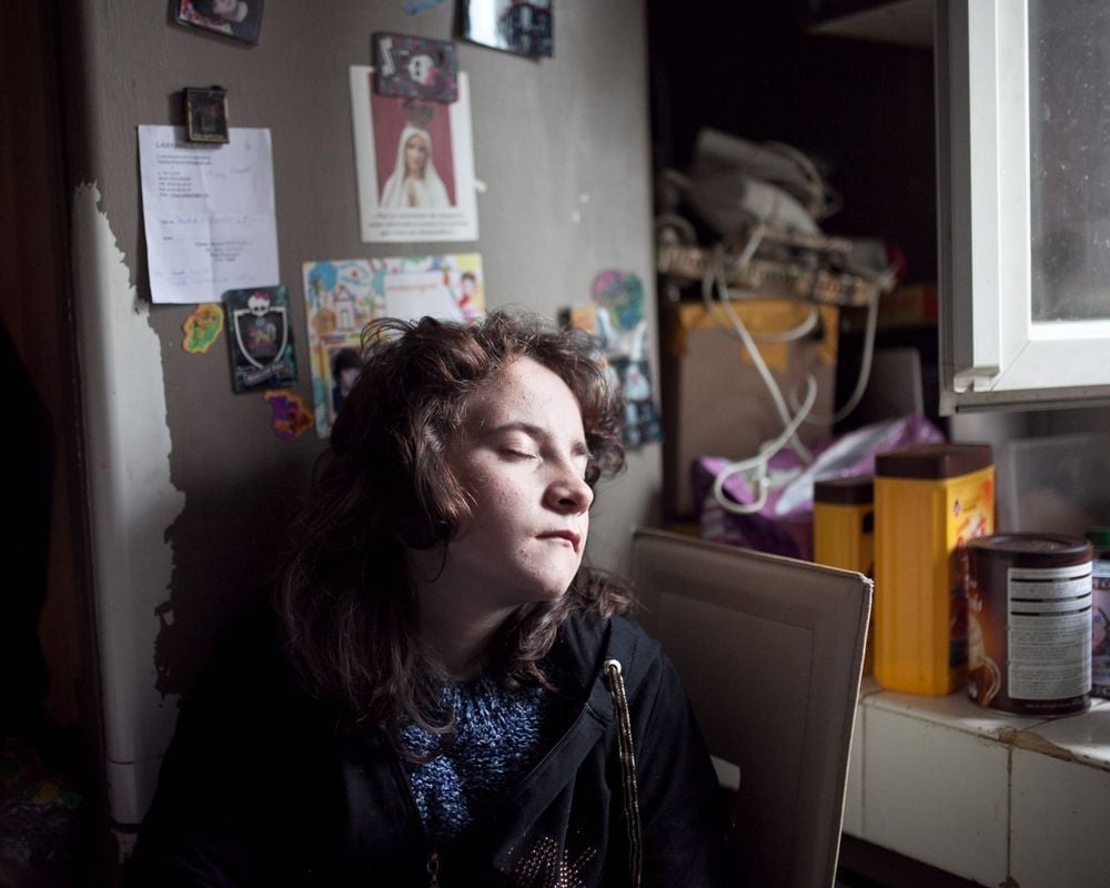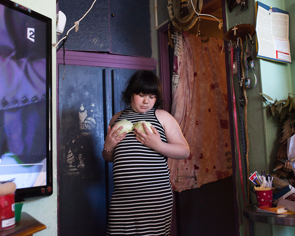 I started talking to them and was quickly invited into their daily life. Their family lives in an apartment that is about 80 square meters [around 860 square feet]. Its four rooms house Françoise and Thierry, their two unemployed parents; the sisters; and their uncle Etienne—in addition to five dogs, four cats and a multitude of objects related to both Native American and American culture.