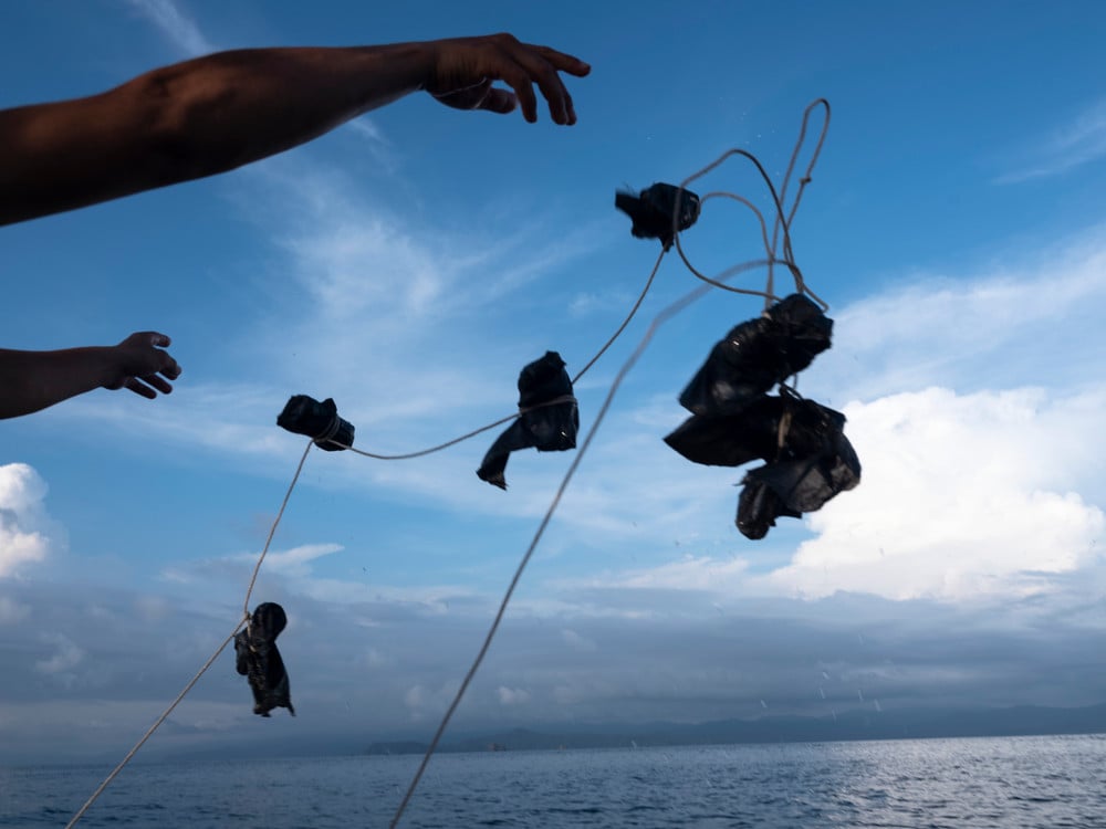 When pursued by the Colombian navy, drug traffickers on both coasts, the Pacific and the Caribbean, will dump their cargo overboard to lighten their boats to make a speedy escape. As someone in one of Escobar-Jaramillo’s accompanying video works says: “The white catch is all about opportunities.” These packages are at times found by local fishermen who must decide if they should ignore them or pick them up, using them to buy a new boat, construct another floor of their house, throw a party, or make something out of the surprise circumstances. For others, the temptation is not there. They have no desire to become a link in the chain or they have already lost relatives to drug violence or simply have no desire to be involved in illegal activity.
